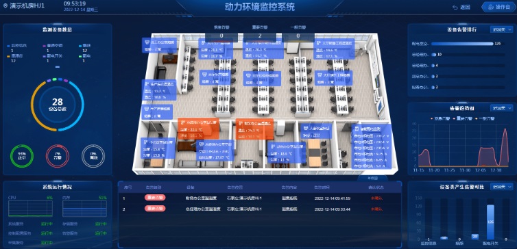isP-CMS-3D動環監控三維仿真平臺應當具備以下特點: (1)isP-CMS-3D可視化監控平臺是建立在前瞻性地理信息數據庫的基礎上的,包括前瞻性圖形數據、屬性和軸數據、用戶數據等繼續分析,可進行計算并更正。 (2)isP-CMS-3D可視化監控平臺提供設備管線檢查、記錄、數據更改和使用等功能,通過情景分析模擬流量和負荷分析,優為企業提供交通管理依據。 (3)isP-CMS-3D可視化監控平臺提供設備信息、管道圖像處理、分析、透視、設備運行周期、維護、維修預期壽命等,有效降低維修成本,提高工作效率。 (4)isP-CMS-3D可視化監控平臺可以模擬現場預運行條件,對現場設備運行、管道添加、處置、移動等進行操作,大大提高輔助決策功能的分析能力。 (5)isP-CMS-3D可視化監控平臺監控軟件可在手機、筆記電腦、臺式電腦或車載電腦上安裝,實現隨時隨地對機房進行監控、監視與管理。 isP-CMS-3D動環監控三維仿真平臺是全面實現統一監控、故障分析、及時告警、和處理體系等機房功能的基礎,是實現機房的規范化的保障,可見機房動環監控系統的功能離不開三維仿真平臺的支持。